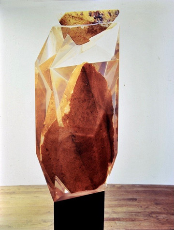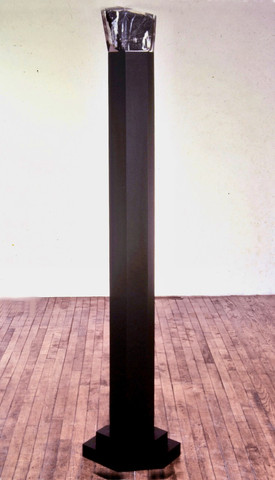 TOTEM POLYHEDROID I: (1983) 60" Tall on pedestal, Poly-resin, Quartz, Wood base_1983